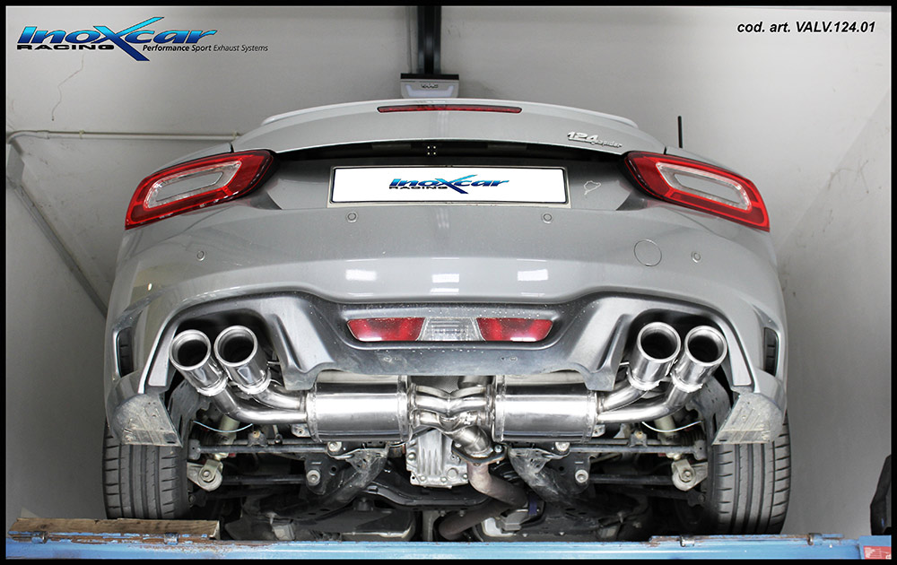 INOX CAR – POSTERIORE CON USCITA 2 X DIAM. 90 DX+SX + VALVOLA CON MOTORINO ELETTRICO + TELECOMANDO ABARTH 124 SPIDER 1.4T MULTIAIR (170CV) 2016