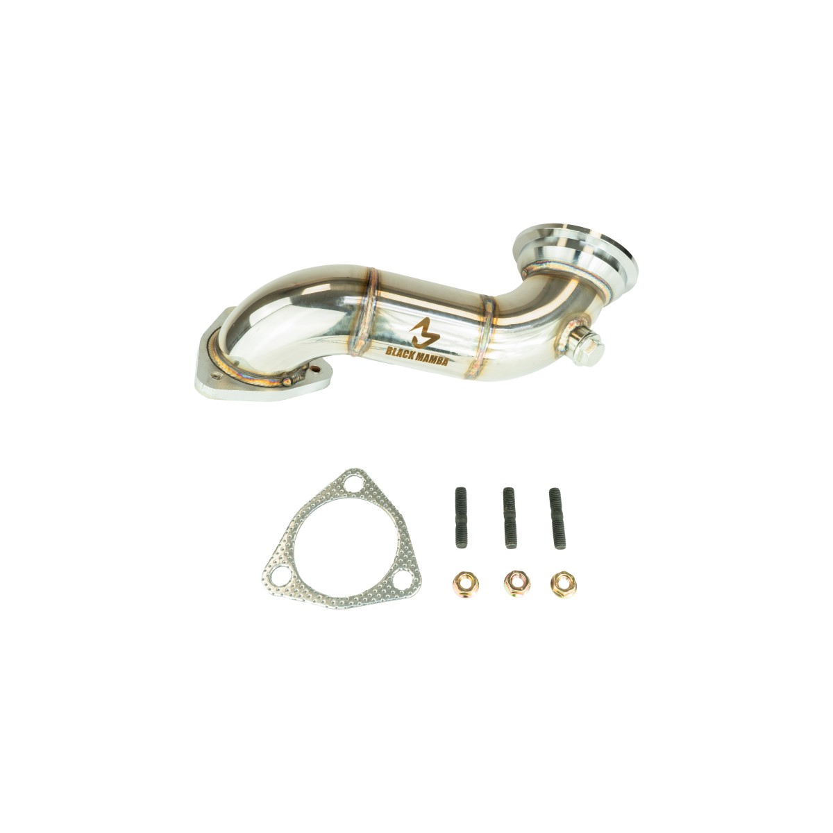 Downpipe Black Mamba Decat per Opel Astra H OPC, realizzato in acciaio inox T304 di alta qualità. Progettato con curvature di precisione e saldatura TIG, questo downpipe da 3″ (76 mm) garantisce un flusso di scarico, una durata e prestazioni migliori. Si collega direttamente dal turbo al sistema di scarico catback originale o aftermarket.