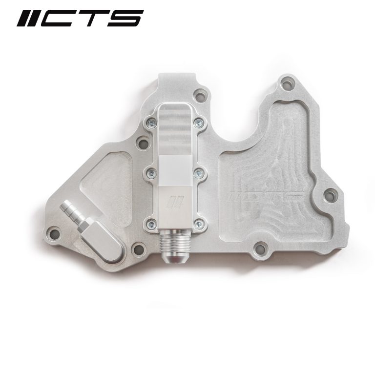 The CTS Turbo 2.0T EA888.3 TSI breather adapter plate (for MK7 GTI/Golf R/8V A3/S3) is designed for use when removing the factory plastic breather from the valve cover in favor of a more reliable breather/catch can system.  For ease of installation on EA888.3 TSI engines our breather adapter plate allows for the use of the rear PCV connection to the turbocharger intake pipe.  Our breather adapter plate features -10 AN fitting for use with the CTS Turbo EA888.3 TSI catch can kits, or for custom breather setups.  Installation of the CTS GEn3 TSI breather adapter can aid in reducing oil vapors and carbon buildup in the intake ports and valves.