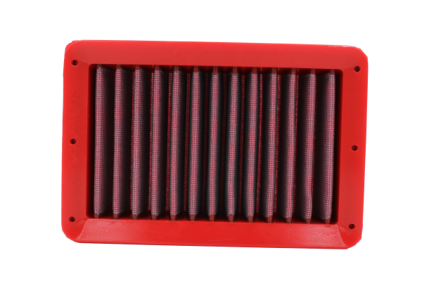 ll filtro aria BMC è composto da due strati di rete di alluminio con rivestimento epossidico posto a protezione della struttura della rete, che vincola il materiale filtrante in cotone oliato, disposto su più strati.Questo garantisce un elevato livello di efficienza filtrante e una minima perdita di carico, ovvero la differenza tra aria da filtrare e aria filtrata. L’olio utilizzato aiuta nella ritenzione delle impurità contenute nell’aria, permettendo una filtrazione continua. L’elemento filtrante in cotone è co-stampato all’interno di un telaio di supporto esterno che si inserisce direttamente nell’air-box e ne caratterizza la perfetta installazione. Ogni fase del processo produttivo (dalla progettazione alla produzione) è svolta in Italia da tecnici italiani utilizzando i migliori materiali.