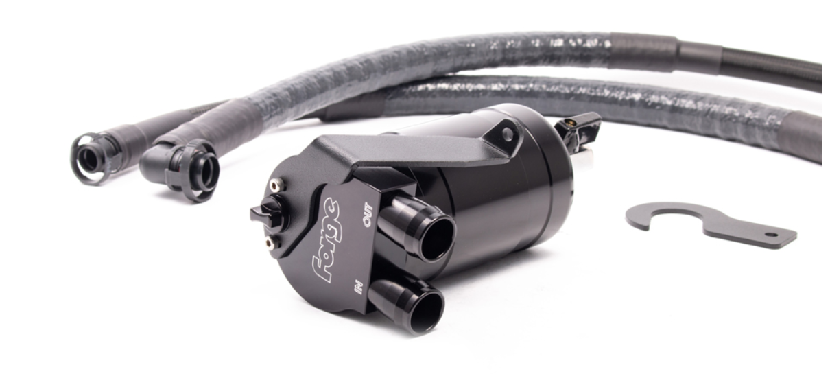 I motori turbocompressi spesso aspirano quantità significative di olio nel motore attraverso il sistema PCV. Questo sistema di serbatoi di raccolta dell’olio marchiato Forge Motorsport rimuove l’olio aerato in modo che possa essere scaricato e riciclato