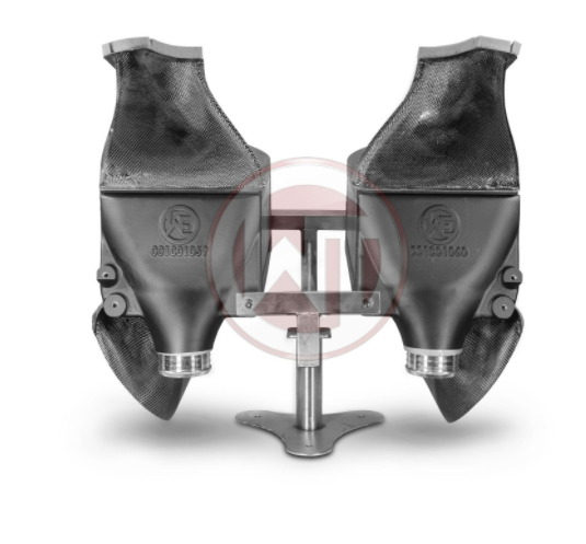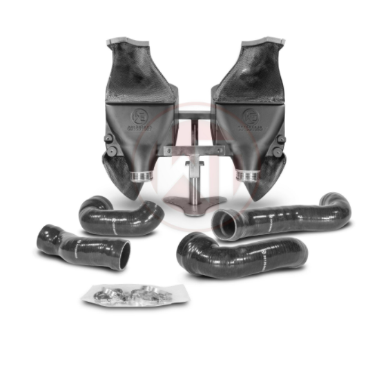 Gli intercooler ad alte prestazioni EVO 2 hanno le seguenti dimensioni di rete (2 x [330 mm x 222 mm x 145 mm] = 21.244 cm³) e offrono quindi il 77% di volume di aria di sovralimentazione in più rispetto all’intercooler originale. La rete ad alte prestazioni da competizione di nuova concezione è molto leggera, quindi i due intercooler pesano solo 2x 6,7 kg. Le scatole terminali dell’intercooler sono realizzate in fusione di alluminio e sono state ottimizzate utilizzando analisi di flusso nel sistema CFD. Le connessioni a scatto originali sono state eliminate e il diametro della connessione all’ingresso e all’uscita è stato ampliato a Ø70mm. Pertanto il kit contiene 4 tubi in silicone rinforzato. Il risultato sono eccellenti proprietà di raffreddamento con la contropressione più bassa possibile. Il kit intercooler include anche due condotti dell’aria in carbonio abbinati per garantire un flusso ottimale all’intercooler. Pertanto, questo kit è adatto per le corse. Inoltre, tutti i nostri intercooler hanno un rivestimento anticorrosivo con proprietà di conduttività termica. Ciò garantisce un raffreddamento permanente e ottimale con un significativo aumento delle prestazioni. Riceverai un kit completamente pronto per l’installazione, che puoi semplicemente sostituire con un intercooler standard, inclusi nuovi condotti dell’aria in carbonio, tubi in silicone e adattatori in alluminio. Tutti i nostri prodotti sono soggetti a un costante monitoraggio qualitativo. Tubi in silicone e adattatori in alluminio. Tutti i nostri prodotti sono soggetti a un costante monitoraggio qualitativo. Tubi in silicone e adattatori in alluminio. Tutti i nostri prodotti sono soggetti a un costante monitoraggio qualitativo.