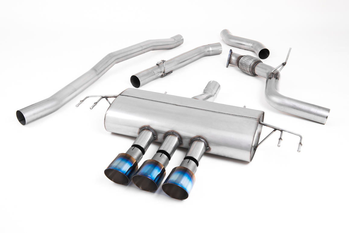 TYPE OF SYSTEM Cat-back – Cat Back Non-Resonated (Louder) – Type-R Style with GT-100 Burnt Titanium Trims – Requires Rear Valance to be Trimmed