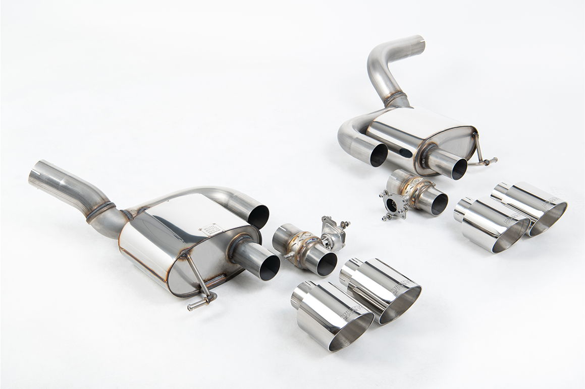 TYPE OF SYSTEM Rear Silencer(s) – Valved Rear Silencers – Works with OE PSE Switch and requires OE system cutting – with Polished GT-115 Trims