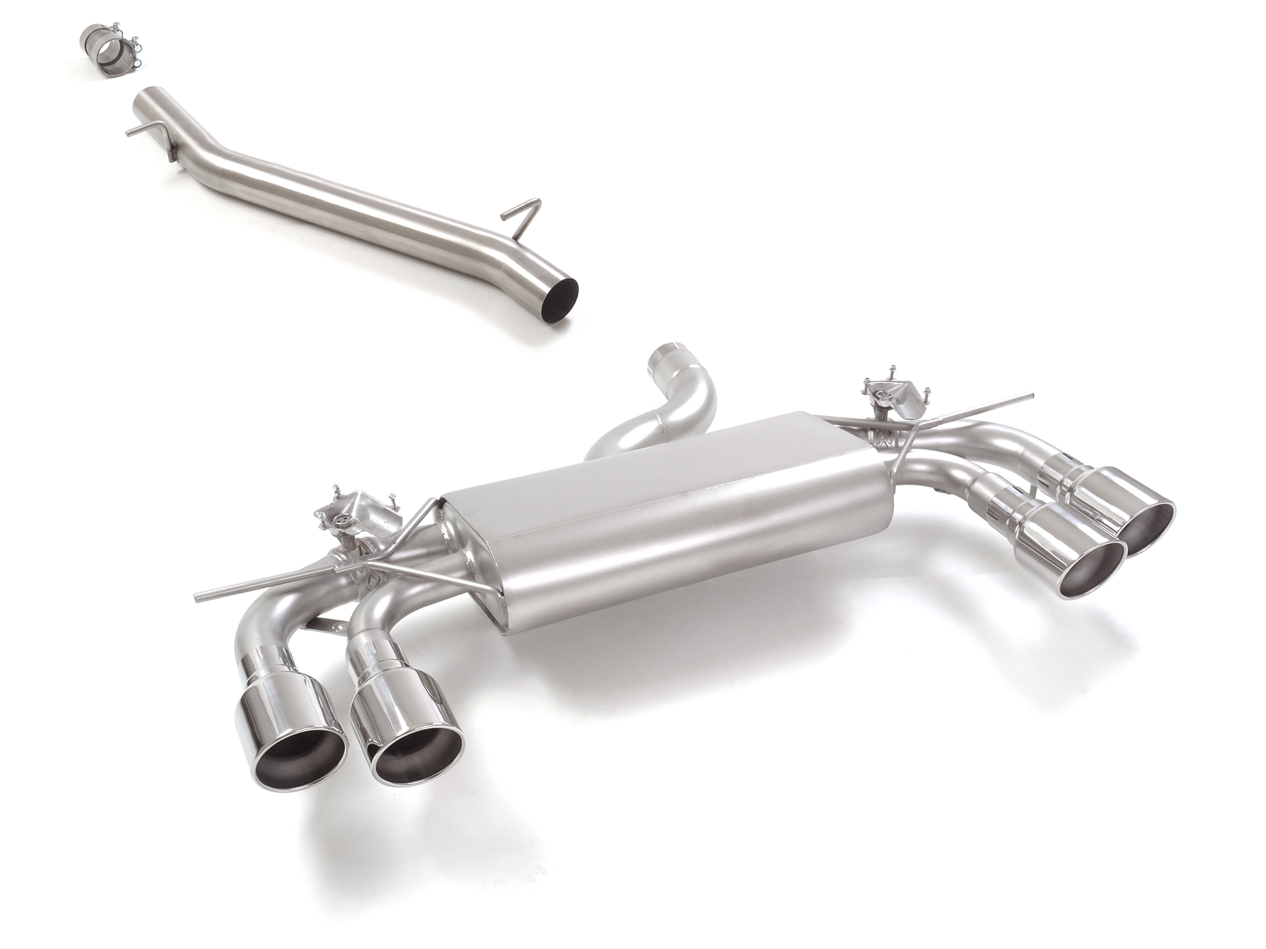 Tubo centrale inox + Posteriore inox sdoppiato con terminali rotondi 4 / 102 mm Sport Line