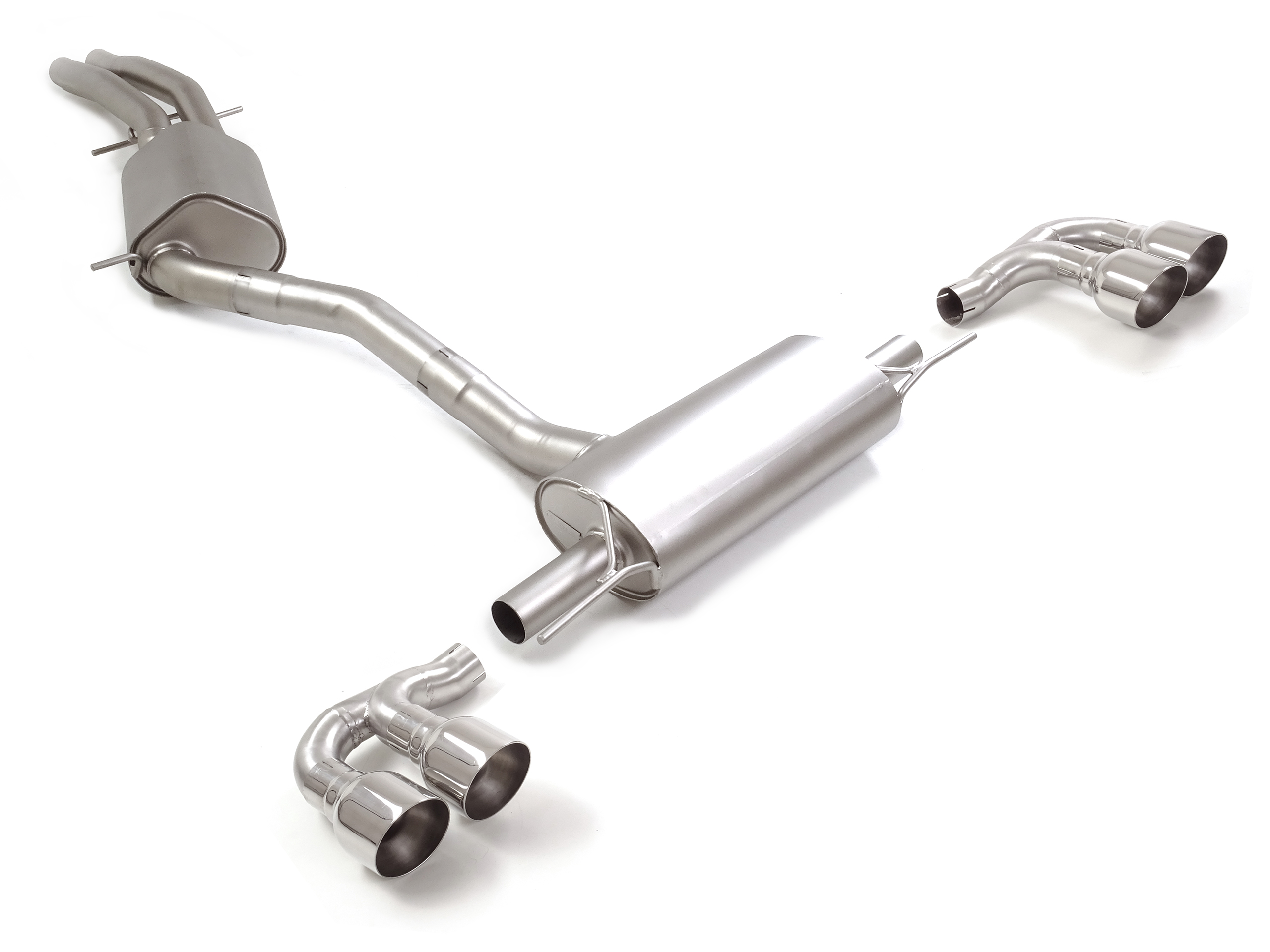 Tubo centrale Gr.N senza silenziatore inox + Posteriore inox sdoppiato con terminali rotondi 4 / 108 mm Sport Line